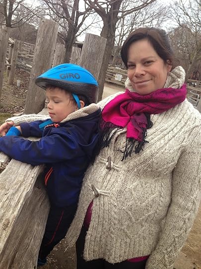 Here's happiness. (He loves his new blue "hemoot" and doesn't often take it off.) We played football and lined up all the toys; he made a tower of blocks with Wayson and got a dinosaur calendar from Carol and a hug from neighbour Monique; got his presents from Glamma - a pair of toy "nocklears" - binoculars - from Monoprix, a French t-shirt, a bell for his strider bike which he dinged as we went to the farm to see the baby lambs, kids and piglets. And best of all, a chocolate bunny, because I was not here at Easter.I cannot imagine a love greater than the force in my soul for this boy. And soon there will be another one; my heart will need to stretch even bigger.