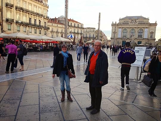 Monsieur et Madame sur la Place de la Comedie, the central piazza of Montpellier. Lynn very proud of her boots from Austin, Texas, where she did a stage and I visited her last year.