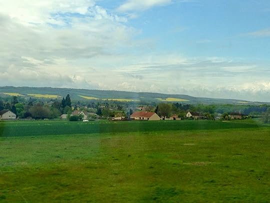 Done and done. My adventure is nearly over - early tomorrow, I drag the suitcase to CDG (it's so full, I bought string today to wrap it up, in case it bursts open) and the very long flight home. A final day of pleasure - this morning in Montpellier, Lynn went out early for fresh croissants for breakfast and fresh bread to make us ham sandwiches for the train to Paris. Denis was going to Versailles to visit his mother who has Alzheimer's, and I for one night at my little hotel before going home. A last farewell to my dear friend, who was looking forward to getting back to work, and her husband and I boarded the superb speedy TGV; we'd bought 1st class tickets as they were barely more expensive than the regular ones, so we rode in wide reclining seats watching the beauties of France whizz by. Denis pointed out parts that had not changed in almost a thousand years - fields, farms, villages, chateaux, churches. As green as Ireland, very tidy and beautiful.