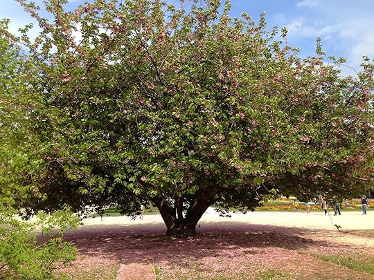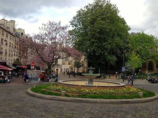 At the Gare de Lyon, he set off to see his mother and I to the hotel, and then to wander the city for the last time. It rained on and off today, as it did my whole first two weeks here, but it was mostly sunny and warm. I bought gifts, even though there's no room in my bag - macarons, croissants and pains au chocolat, little things for Eli. Visited Dad's tree in the Jardin des Plantes and then the Jardin du Luxembourg, both glorious in the spring sunlight. Walked until 7.15, when it wouldn't be too gauche to eat an early meal, and sat on the rue Mouffetard to dine outside, watching the French go home from work with their baguettes.