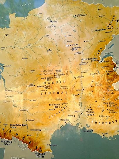 An exhibition of the mountain ranges of France on the gates of the park had this map of French mountains.