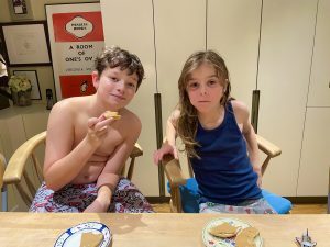 This morning, they came over again to spend a last few hours with their dad and grandfather, and then Anna and the boys went in an Uber with him to the island airport, because it’s near their house and the boys love the place. And I sat down to recuperate. Eventually put away toys, did a load of laundry with another to come, ran the dishwasher. The house is breathing quietly once more, after the chaos and noise; the boys are unstoppable, and Bandit too. Poor Tiggy was overwhelmed.