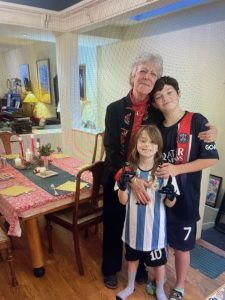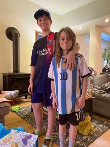 This year, Xmas morning, just had to stuff the bird and make sure all was ready for the tsunami, which arrived early afternoon, to the usual flurry of unwrapping. This year we swore to keep it all simple and minimal, and we did, and yet … Soccer jerseys were a special hit, leading to much soccer tearing apart the living-room. Mbappé and Messi shooting and scoring! But where is the adorable David Beckham?