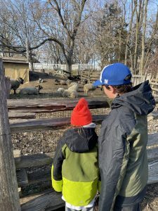 After much spaghetti, we settled down to read, not Dogsong yet, but their Xmas book, The Eyes and the Impossible by Dave Eggers, written in the voice of Johannes, a spectacularly articulate and confident dog. A great book so far. We went in the sunshine to Riverdale Farm, where after communing with goats and sheep they kept joyfully busy for a long time throwing stones into the empty, almost-frozen duck pond. What is it about a body of water that compels small boys to shatter the surface with stones?