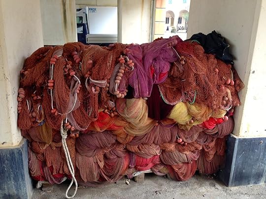 Fish nets. I don't remember the nets in Nova Scotia being red and purple and pink.