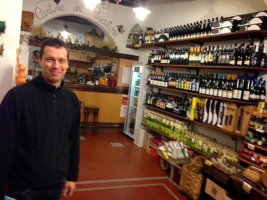 Our host. Bruce and I both wanted to marry him. Unfortunately his wife was behind the bar. I bought a package of risotto al limone from him to take home. So many people here look like faces from paintings - Giotto, Botticelli, Caravaggio.