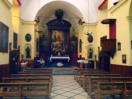 On our way up to a church where, Bruce was happy to learn, there was a crucifixion painted by Van Dyke. We found the tiny little church way up on the hill. I refused to look much at the Van Dyck tho' BK told me this one did not have the usual blood dripping down. But I do not want to look at that man hanging there any more.