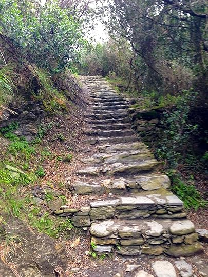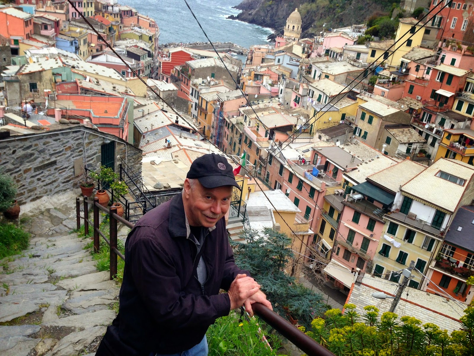 In Vernazza, we found our landlady who gave us the key to the Airbnb place Bruce had booked, found the place, actually got inside, made a list of what was missing and needed and went back to explore the town. I said to Bruce, it's not actually raining right now, let's just start one of the trails to see what it's like, so we followed the sign to Corniglia to the south and started to climb. And climb.