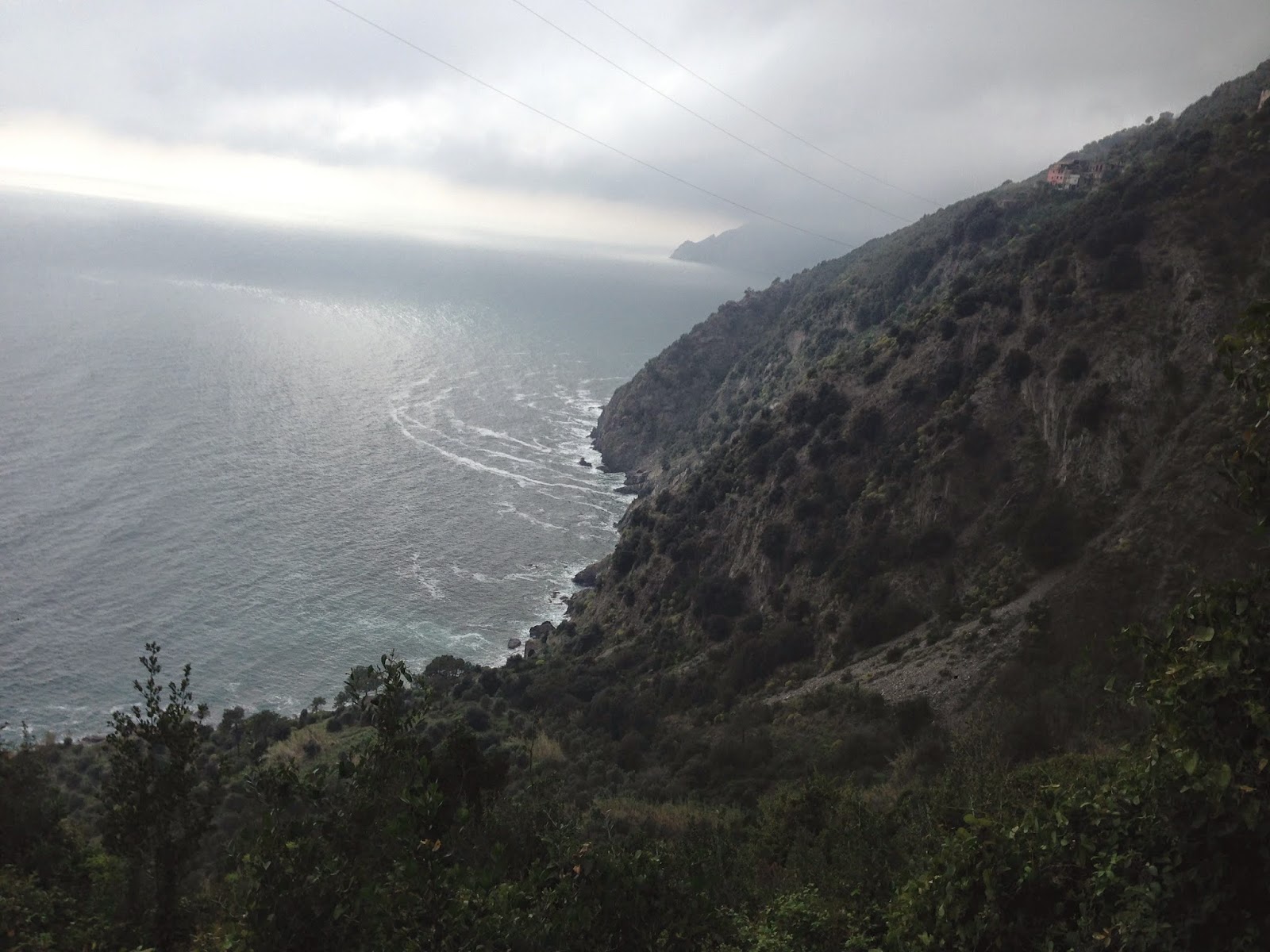 Almost sunny for a minute or two. Monterosso, the next town to the north, in the distance.
