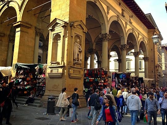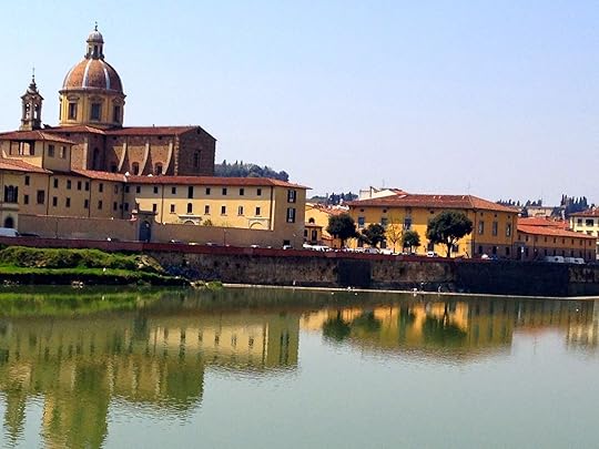 And so it is - dark clouds and rain this morning, as we head off to a spot famous for its hikes and boat rides to see the view. But as I just wrote to Bruce, our sunny dispositions will get us through. How lucky we've been so far with the weather - it has been perfect. Not a complaint. My hotel was wonderful - very small, inexpensive and unpretentious, and the quiet location far away from the heaving mass of central Florence. I loved crossing the river at night and in the morning, seeing those bridges, the magnificent skyline, the crowds at a distance, the rowers on the Arno. I have loved everything about my stay here.