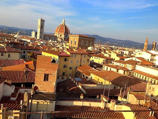 There have been many magical moments here; one was yesterday evening, Bruce and I in a hotel he knows about that has a tiny bar on its roof with an incredible view of the city. We had a drink and looked at the vista while the sun set, talking to a wonderful American couple. Today we had another traveller moment - we went to eat at famous Mario's, extremely crowded, where you eat wherever they can squeeze you in, usually at someone else's table. They put us with a young couple who turned out to be Greek, he visiting from Athens, she studying architecture in Florence. We bonded immediately. I found out she's 29 years old, just the age I was in 1979 when I visited both Athens and Florence. As she sat there, long glossy brown hair, lovely fresh face, unsure of her direction, I saw my young self. She asked for my FB address and has already sent a friend request.