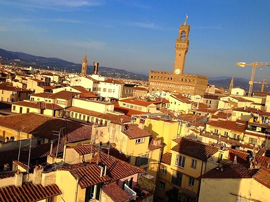 The Palazzo Vecchio, seen from the top floor of the Hotel Torre Guelfa - Bruce knew about this place, which has a tiny bar at the very top where you can sit outside with a glass of wine and drink in both Chianti and skyline. Paradise, especially as today was the most perfect weather of all.