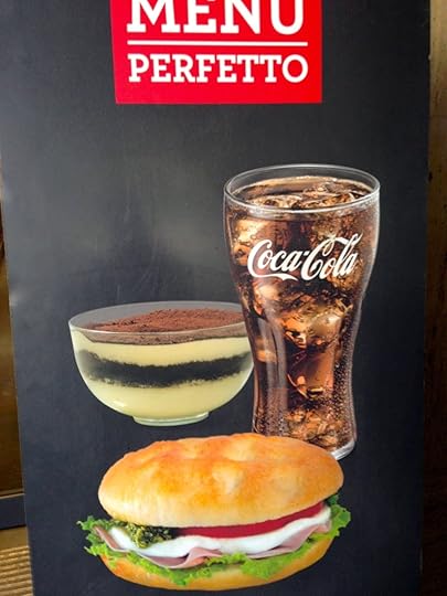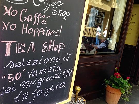 Sign in Cortona - no caffe, no hoppines! Bruce agrees.
