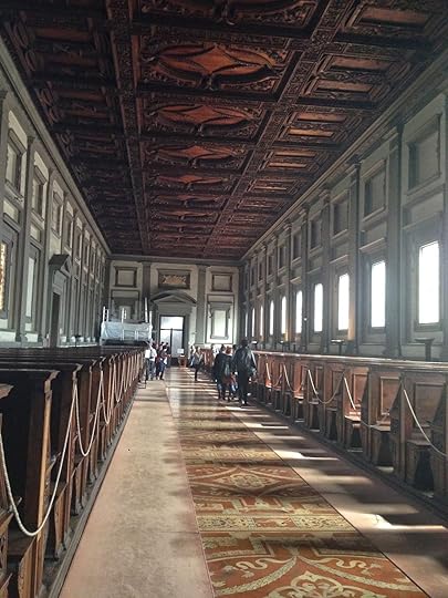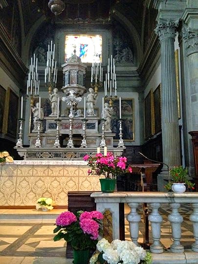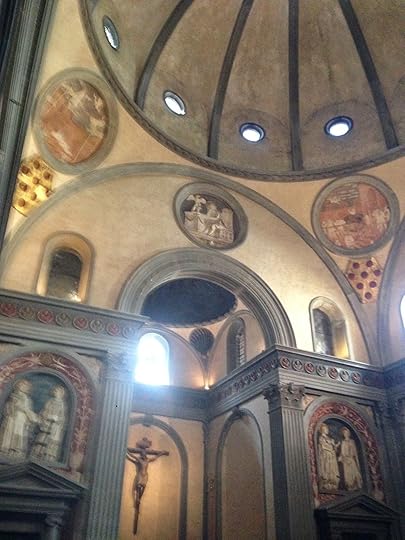 Can't do it justice, of course - many kinds of marble everywhere, gilt, painted ceiling. Then I went to the Duomo and saw Brunelleschi's incredible dome. Everywhere, people shove their cameras in front of you and snap away, oblivious. Worse are the giant iPads that people hold up in front of everything. I'm getting to the point that I don't want to take pictures, just to look. But I want to share what I see with you. So - dilemma.