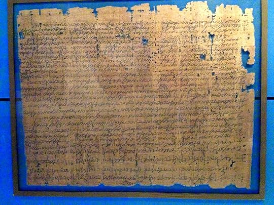 From a display of the history of writing - a divorce decree from 569 AD. My people - writing on clay, on papyrus, on parchment rolls, on flattened deerskin hides, and on a strange new material "made from macerated rags" - paper.