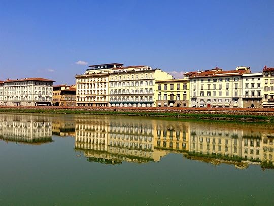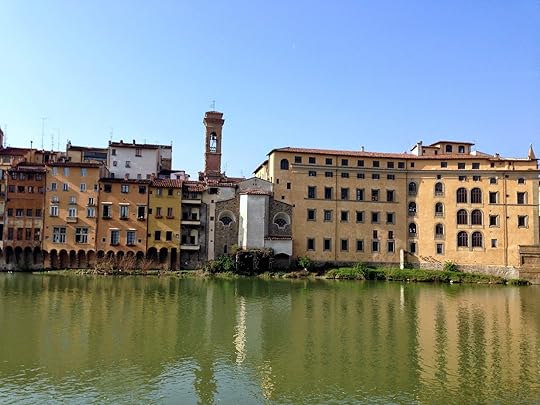 Across the Arno. All those ugly buildings and the sky way too blue.