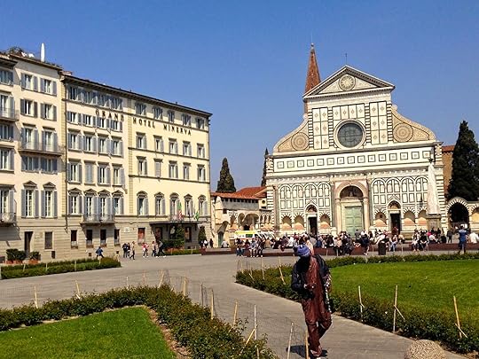 The Duomo. Spectacular. I then went alone to see Santa Maria Novella, jam-packed, yet again, with great art and architecture, frescoes, paintings, sculpture, and a beautiful cloister with more frescoes. Then to the Farmacia nearby, a shop started in the 1600's and still selling perfumes and expensive soaps. It smelled good. And then - time for a rest.