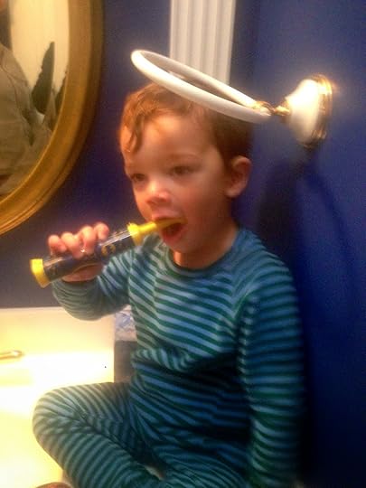 Brushing teeth at the airbnb house - NOT, I repeat not an angel.