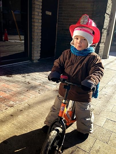 I got warm this morning by visiting Mr. Chatty, the busiest boy ever. I ended up throwing a ball for him to chase, just like a puppy. We read a book which had a picture of a purple cat. "Me kiss him," he said, and I held the book close so he could give the cat a kiss. Could I love this boy more? And then we walked up Roncesvalles to the wonderful toy store Scootergirl, to buy him something he wanted desperately - a firefighter hat. Oh, wonder. While there, his mother and I checked out the Playmobil stuff for Christmas presents. Another great treat of grandparentdom - visiting toy stores again. I wanted half the stuff for myself.