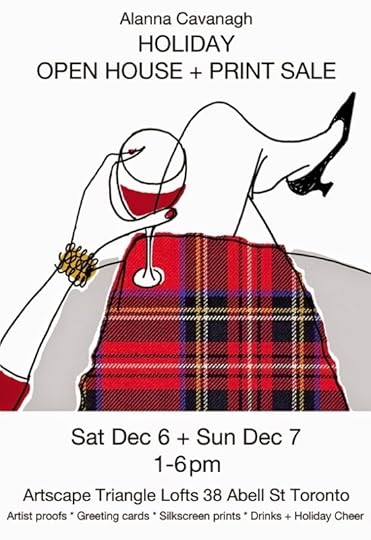 Many people have expressed admiration for the beautiful covers of both my recent books - the work of the multi-talented Alanna Cavanagh. For those interested in seeing more of her work and maybe - support your local artists! - acquiring some for yourself, she is having one of her famous Open Houses in a few weeks. Don't miss it. Her studio apartment, in a building full of artists, is amazing, and her work is unique. I hope she has some of her fabulous orange Penguin book cover prints on sale. Mine - by Virginia Woolf - dominates my kitchen. I love it.