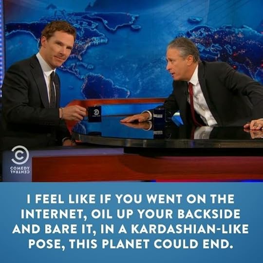 For those who didn't catch the Daily Show last night, the divine Benedict Cumberbatch was on with the divine Jon Stewart. I overheated - two of my favourite men on the planet, sitting across from each other. Jon was like a schoolgirl with a crush; he asked Benedict to marry him, but BC said, "You're a bit late." He just got married to some incredible woman, like George Clooney's wife, beautiful, accomplished, brilliant etc. etc.