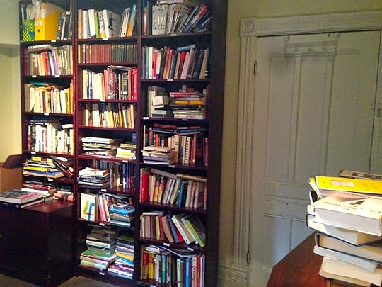 As a point of comparison, I'd like to show you one of the favourite rooms of an obscure Toronto writer and teacher: the library, with unpainted Ikea bookshelves, of my humble self.