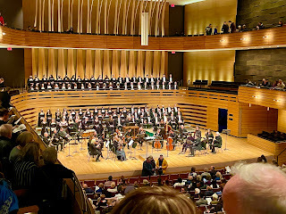 The treat of the week: going to beautiful Koerner Hall to hear Bach's B Minor Mass, a two-hour work that took the great man twenty-five years to complete and wasn't performed until over a hundred years after his death. Sublime - the Mendelssohn Choir, over 70 voices with orchestra, and JSB's exalted faith and genius elevating us all on a Tuesday evening in downtown Toronto. That moment when the choir, seated, rises, and you know those Glorias and Kyries and Hosannas are going to ring out, one transcendent musical moment after another. I floated home.