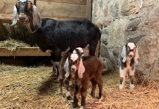 The weather is brisk but nice. We're getting there. Hang in, Canadians. Here are the new arrivals at Riverdale Farm. Those ears!