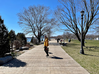 One of those perfect days that feel like the greatest blessing ... hot sun though still a chill wind, but we'll take it. Went across town to Anna's, the boys playing basketball in the yard while their mother cooked; the inventor of basketball should win a Nobel Peace Prize, that sport has done so much good for the planet. Eli's dad Thomas arrived, and Sam, T and I put together the trampoline I bought them when the pandemic hit in 2020 and that has been in use ever since. Ben is a constant bouncer.