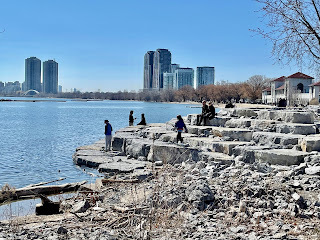 Bewildering — after a week of heat, it's now 6 degrees with a possibility of flurries. On Saturday, I walked the packed Woodbine beach with Anne-Marie; 29 degrees, men in shorts, women in bikinis playing volleyball, sunbathing. Now windows are shut, sandals put away — for now. But it'll be 16 on Friday.