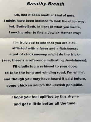 My dear friend Nick Rice is also in the foothills. Nick and I were actors together, and ever since, for some reason, we call each other Nickynicknick and Bethy Beth. He's a blog reader who sends me letters and sometimes poems, always connected to Beatle songs, and last month, when I was really sick, I received this.