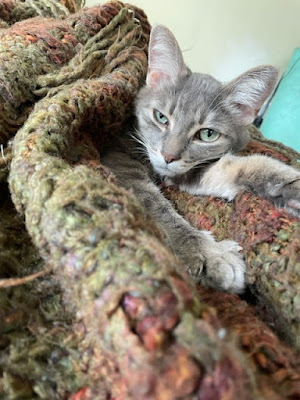 My little grey friend, on the other hand, is slowly taking over this house. She meows outside my door early in the morning, lonely little cries - Why O why, heartless one, are you shutting me out? So then I let her in and she settles on my legs and cuts off circulation. I love it.