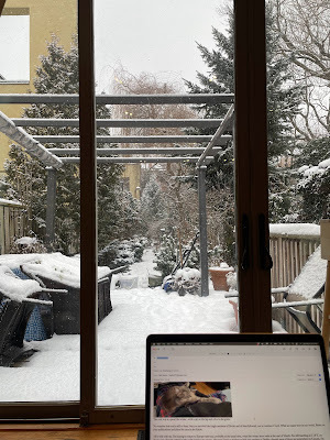 January was something else - mild and gloomy - but now a polar vortex has descended. Yesterday Ruth and I went for lunch at Annie's in the Beach and walked down to the lake only a stone's throw away. It was minus 27 with wind chill; the cold and wind burned our skin, and we nearly froze. Today much milder and snowing. It's winter.