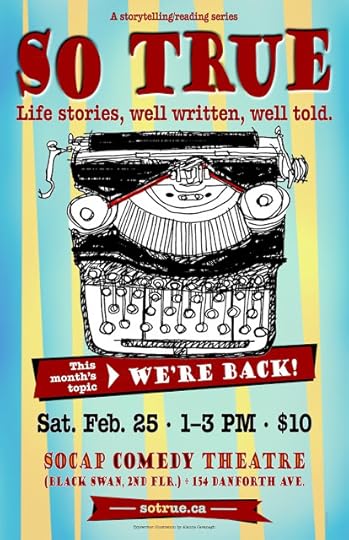 Gearing up for So True: eight powerful storytellers plus me. Very proud of the group and their work. It will be a blast of warmth in the midst of our frigid season.