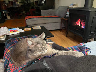 Here is how I intend to spend at least some of today: by the fire, cat on lap, focussed. It doesn't get better than that.