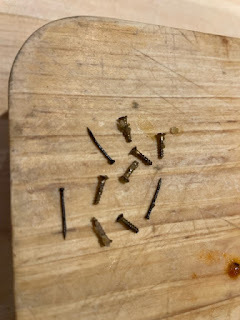 PS Had a SECOND small glass with dinner. The Evil Knievel of drinkers. Actually, that flirting with danger turned out to be true. I defrosted a small pot of my pesto from the freezer to have with pasta and fish, but as I ate, I felt something hard. And then something else. I found a tiny screw, and then a second, and then a small nail, about ten in all. I remembered that a small, very old picture frame came apart years ago; I must have stored the hardware from it in the jar and then filled it, somehow, much later, with pesto.