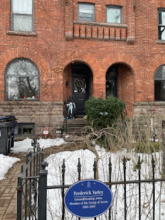 Walked in the 'hood the other day and was happy to see more of those lovely blue plaques honouring artists who lived here. Paris and London are full of them, but we're catching up. Both of these are new. Writer Richard Gwyn lived just up the street. Varley the painter lived where a friend used to.