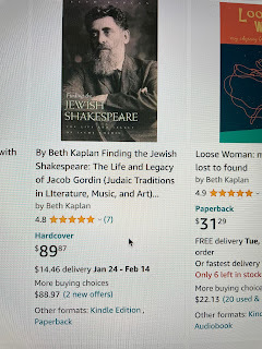 How helpful Amazon is. Just discovered my Jewish Shakespeare hardcover is on sale for nearly $90. No wonder the sales are pouring in.