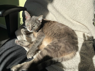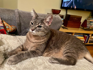 I've been very lucky with Tiggy Stardust. She's a lap cat, so much so that the minute I sit in my favourite chair and pull on the blanket, she's there, keeping me warm. My last cats were neither of them lap cats, although the whole POINT of a cat is to sit in your lap. Tiggy knows that. She's a delight, the perfect companion. So glad we found each other.