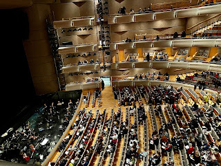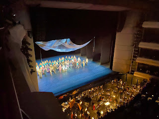 And at the end, during the curtain call, a little old lady walked on stage: Madame Atwood herself, tiny in the midst of the willowy dancers, to a rapturous standing ovation. Made me proud to be Canadian. And we loved our view over the orchestra pit and the stage.