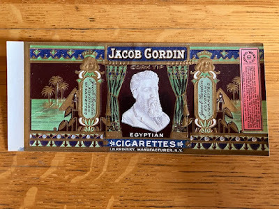 A friend just sent this: cigarettes named for my great-grandfather. My friend thinks they came out after the old man died in 1909, to capitalize on grief and sentiment. Problem is, Gordin died at age 56 of cancer of the esophagus after a lifetime of smoking. However. Nice to see his name and face, even on cigarettes.