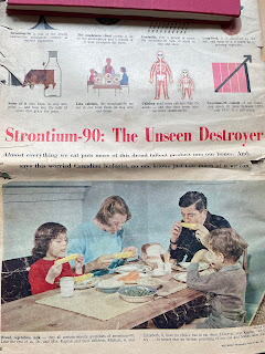 An article from Weekend magazine, 1958, about nuclear fallout. That's me, aged 8, eating Strontium 90-laced corn.