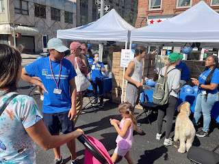 The hospital just up the street was offering free blood pressure testing and free bike helmets. A big lineup. My blood pressure is normal to low. I didn't get a helmet, I have one.