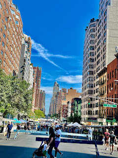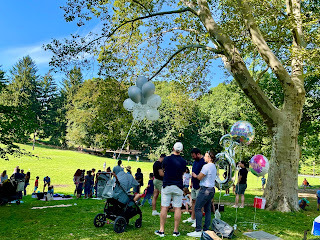 Birthday party, Central Park - the fathers gather at the back, by the balloons, while the mothers organize the games and cake. Many happy children.And then I took the 79th Street exit and wandered back to Ted's. This is the first time in memory I've come to NYC and not gone to the theatre. I have stayed in a close radius to home. Glad I came. Glad I'm leaving.