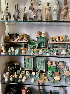 Click to enlarge. Cousin Ted's museum - one of the many shelves filled with antiquities.