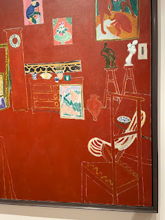 The Matisse Red Studio exhibit, the main reason I came to NYC besides seeing Ted and Henry. He painted it in 1911, when he could at last afford to design and build his own studio. He painted this for his Russian patron who didn't want it (!) so it languished for decades before being hung in a British nightclub and then eventually making its way to New York. Most of the actual objects and art works he included were assembled here.