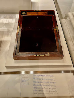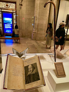 From "Treasures" - some of the treasures of the NY Public Library's collections, including drafts of the work of all kinds of writers, like Rachel Carson, James Baldwin, Frances Hodgson Burnett - and Beethoven. Kindred spirits, crossing out and annotating. This is the First Folio of Shakespeare's works. Beside it, Virginia Woolf's cane that she took with her to the river Ouse and left on the bank as she waded in.