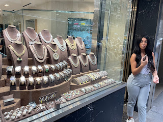 Click to enlarge.I walked along 47th St., the centre of the diamond trade, shop after shop stuffed with diamonds. These were the biggest - ridiculous rapper necklaces.
