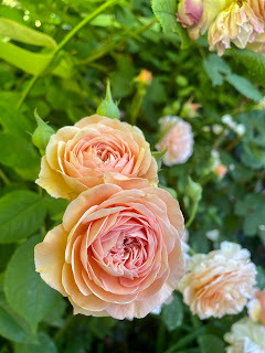 Getting old is in many ways not fun; the wrinkles and splotches and aches, for some the terrible afflictions of disease and disability. The knowledge that the days are limited, closing down. But nothing, nothing is better than the sense I'm flooded with right now of having climbed from many days of fear, confusion, and sometimes despair, to this place of utter gratefulness: the smell of roses, the long green stretch of healthy garden, one of the loves of my life about to come downstairs and I will make him a cup of coffee.