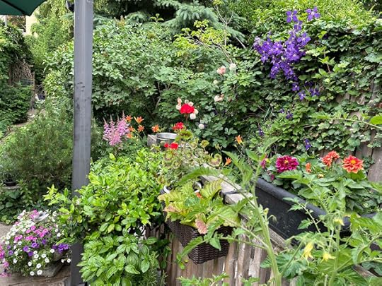 On the other hand, as you know, there's the garden, which provides joyful satisfaction every day. This is the year I turned into a real gardener; I was loving but neglectful before. Now I go out every morning with my secateurs to inspect, prune, find the diseased leaves, the toppled raspberries, the tentative new blooms.